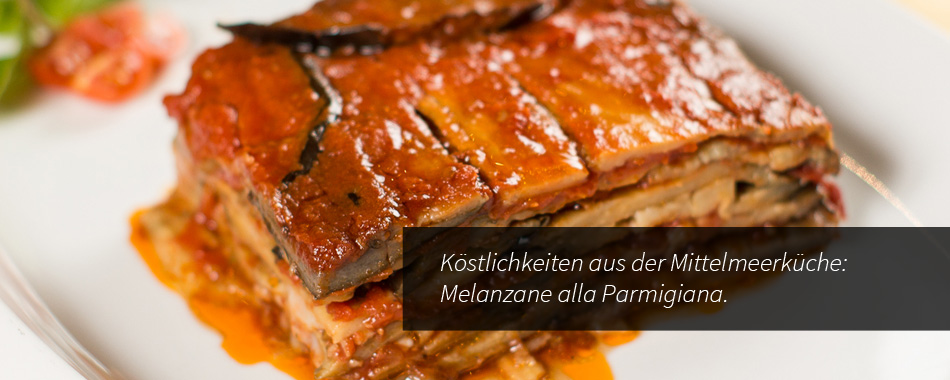 Tauchen Sie in die Mediterrane Genusswelt ein! Dabei dürfen knusprige Bruschette, köstliche Fisch- und Gemüseantipasti und typische italienische Gerichte wie zum Beispiel die Melanzane alla Parmigiana und Spaghetti mit in Zitrone mariniertem Wolfsbarschfilet natürlich nicht fehlen.